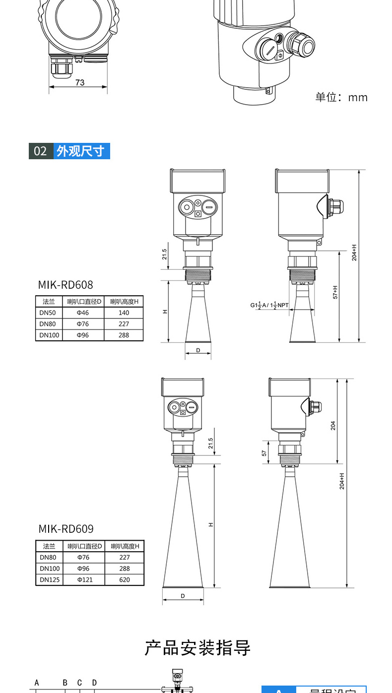 高精度小束角雷达液位计
