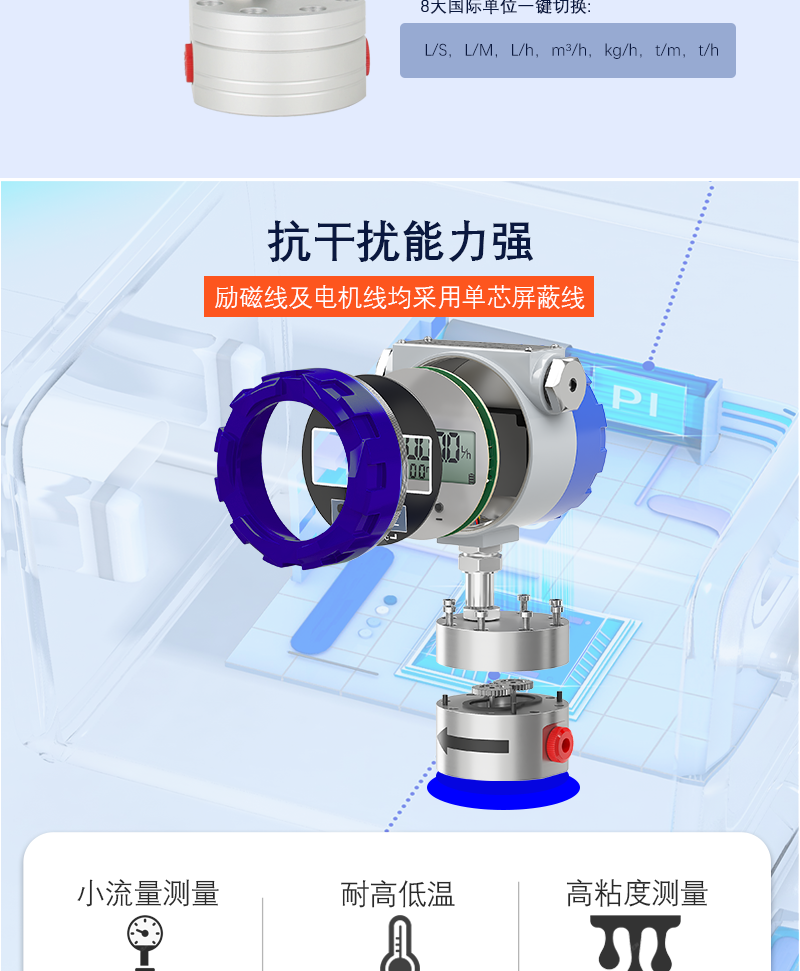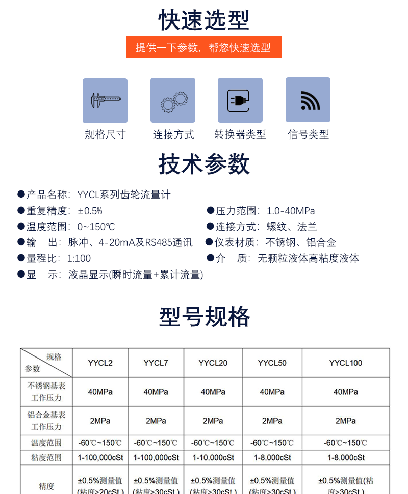 YYCL系列齿轮流量计是根据齿轮马达原理研发的一种新型容积式流量计,用于精密的连续或间断的测量管道中液体的流量或瞬间流量,适合于重油、聚乙烯醇、树脂等粘度较高介质的流量测量,微小流量即可准确计量。