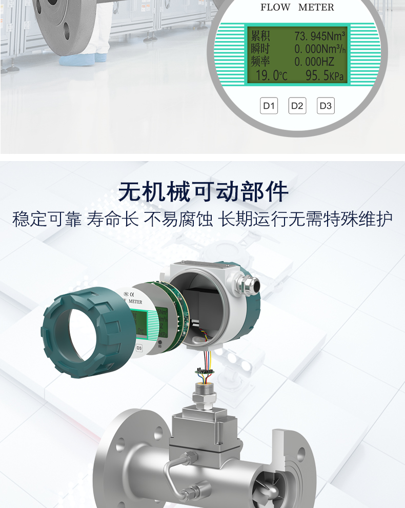 智能旋进漩涡流量计是集流量、温度、压力检测功能于一体的新型气体流量仪表,可进行温度、压力、压缩因子自动补偿,是石油、化工、电力、冶金等行业用于气体计量的理想仪表。